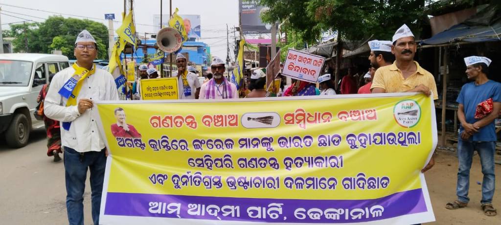 ଆପ୍ ଢ଼େଙ୍କାନାଳ ପକ୍ଷରୁ ଜିଲ୍ଲା ଆବାହକ ପଙ୍କଜ ନାୟକଙ୍କ ନେତୃତ୍ୱରେ ଅଗଷ୍ଟ କ୍ରାନ୍ତି ଦିବସ ପାଳନ ଅବସରରେ ଯେପରି ଇଂରେଜ ମାନଙ୍କୁ ଭାରତ ଛାଡିବାକୁ କୁହାଯାଇଥିଲା, ସେହିପରି ଗଣତନ୍ତ୍ର ହତ୍ୟାକାରୀ, ସମ୍ବିଧାନ ହତ୍ୟାକାରୀ, ଦୁର୍ନୀତି ଓ ଭ୍ରଷ୍ଟାଚାରୀ ଦଳ ମାନେ ଗାଦି ଛାଡ଼ ଡାକରା ଦେଇଥିଲେ l କର୍ମୀମାନେ ଏକ ଶୋଭାଯାତ୍ରାରେ ବାହାରି ସହର ପରିକ୍ରମା କରି ବୀର ଶହୀଦ ମାନଙ୍କୁ ପୁଷ୍ପ ମାଲ୍ୟ ଅର୍ପଣ କରିଥିଲେ l ତାଛଡା ଜିଲ୍ଲାର ବିଭିନ୍ନ ସମସ୍ୟାକୁ ନେଇ ପାଞ୍ଚ ଦଫା ଦାବି ସମ୍ବଳିତ ଏକ ଦାବିପତ୍ର ଜିଲ୍ଲାପାଳଙ୍କ ଜରିଆରେ ମୁଖ୍ୟମନ୍ତ୍ରୀଙ୍କୁ ପ୍ରଦାନ କରାଯାଇଛି l ଏହି କାର୍ଯ୍ୟକ୍ରମରେ ଜିଲ୍ଲା ଉପସଭାପତି ରମେଶ ଚନ୍ଦ୍ର ପଣ୍ଡା, ସାଧାରଣ ସମ୍ପାଦକ ବିଷ୍ଣୁ ପ୍ରସlଦ ପଣ୍ଡା, ସମ୍ପାଦକ ବିଧୁରଞ୍ଜନ ନାୟକ ଓ ଚିନ୍ମୟ ସେନାପତି, ଯୁବ ସଭାପତି ଅଶ୍ୱିନୀ ପଟ୍ଟନାୟକ, ପର୍ଜଙ୍ଗ ବ୍ଲକ ସଭାପତି ପ୍ରକାଶ ବିଶ୍ୱାଳ, ସକ୍ରିୟ ସଦସ୍ୟ ଅଜୟ ସାହୁ, ପ୍ରକାଶ ଭୁତିଆ, କ୍ୟାରୋଲିନ ପାଳ, ରଚିତା ନାଏକ ସରୋଜିନୀ ବେହେରା, ରୁବି ନାୟକ, କମଳିନୀ ନାୟକ, ମଧୁସୂଦନ ମଲିକ, ବିଜୟ ନାଏକ, ପ୍ରଶାନ୍ତ ନାୟକ, ପବିତ୍ର ବେହେରା ପ୍ରମୁଖ ବହୁ କର୍ମକର୍ତ୍ତା ଯୋଗ ଦେଇଥିଲେ l