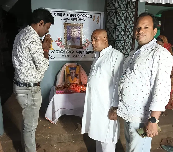ପିଙ୍ଗୁଆ ଗ୍ରାମର ବିଶିଷ୍ଟ ସମାଜସେବୀ ତଥା ପିଙ୍ଗୁଆ ଡିଗ୍ରୀ କଲେଜ ର ବରିଷ୍ଠ ଓଡ଼ିଆ ବିଭାଗର ଅଧ୍ୟାପକ ଦୀପ୍ତି ରଞ୍ଜନ ମହାଳିକ (ଟିକି ଭାଇ) ଙ୍କ ବଡ଼ ବାପା ଜନ ପ୍ରିୟ ଦିବଂଗତ ସନାତନ ମହାଳିକ ଙ୍କ ଏକାଦଶାହ ରେ ପିଙ୍ଗୁଆ ସ୍ଥିତ ବାସଭନରେ ଉପସ୍ଥିତରହିଲେ ଗଁଦିଆଡିଜିଟାଲ ମିଡ଼ିଆ ର ପ୍ରେସିଡେଣ୍ଟ ପ୍ରଦୀପଦାସ ରହି ତାଙ୍କ ଅମର ଆତ୍ମା ର ସଦଗତୀ ନିମନ୍ତେ ପ୍ରଭୂ ଚନ୍ଦ୍ରଶେଖର ଜୀଉ ଙ୍କ ନିକଟରେ ପାର୍ଥାନ କରିବା ସହିତ ଫଟୋ ଚିତ୍ର ରେ ଶ୍ରଦ୍ଧା ସୁମନ ଅର୍ପଣ ପୂର୍ବକ ଗଭୀର ଶ୍ରଦ୍ଧାଞ୍ଜଳି ଜ୍ଞାପନ କରୁଛି। ସାଥିରେ ନିହଲପ୍ରାସାଦ ମଣ୍ଡଳ ର ବିଜେପି ଉପ ସଭାପତି ରବିନାରାୟଣ ପରିଡ଼ା ଉପସ୍ଥିତ ଥିଲେ।ମହାପ୍ରଭୁ ଜଗନ୍ନାଥ ତାଙ୍କ ପରିବାର ଙ୍କୁ ଧର୍ଯ୍ୟ ରଖିବାକୁ ଶକ୍ତି ସୁରକ୍ଷା ରନିୟଂତ୍ରିତ ଦିଅନ୍ତୁ,