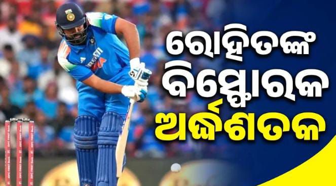 ବାରବାଟୀ କ୍ରିକେଟ୍ ଷ୍ଟାଡିୟମରେ ଭାରତୀୟ ଟିମ୍ର ଅଧିନାୟକ ରୋହିତ ଶର୍ମା ପୁଣି ଏକ ଅର୍ଦ୍ଧଶତକ ହାସଲ କରିଛନ୍ତି। ସେ ଇଂଲଣ୍ଡ ବିପକ୍ଷ ୨ୟ ଦିନିକିଆ ଅନ୍ତର୍ଜାତୀୟ ମ୍ୟାଚ୍ରେ ଏହି ଅର୍ଦ୍ଧଶତକ ହାସଲ କରିଛନ୍ତି।ବାରବାଟୀ କ୍ରିକେଟ୍ ଷ୍ଟାଡିୟମରେ ଭାରତୀୟ ଟିମ୍ର ଅଧିନାୟକ ରୋହିତ ଶର୍ମା ପୁଣି ଏକ ଅର୍ଦ୍ଧଶତକ ହାସଲ କରିଛନ୍ତି। ସେ ଇଂଲଣ୍ଡ ବିପକ୍ଷ ୨ୟ ଦିନିକିଆ ଅନ୍ତର୍ଜାତୀୟ ମ୍ୟାଚ୍ରେ ଏହି ଅର୍ଦ୍ଧଶତକ ହାସଲ କରିଛନ୍ତି। ରୋହିତ ୩୦ଟି ବଲ୍ ଖେଳି ୪ଟି ଚୌକା ଓ ୪ଟି ଛକା ବଳରେ ଏହି ଉପଲବ୍ଧି ହାସଲ କରିଛନ୍ତି। ଏଥି ସହିତ ଦିନିକିଆ କ୍ରିକେଟ୍ରେ ରୋହିତ ଶର୍ମାଙ୍କ ମୋଟ୍ ଅର୍ଦ୍ଧଶତକ ହାସଲ ହୋଇଛି।ରୋହିତ ଶର୍ମା ଓ ଶୁବମାନ୍ ଗିଲ କ୍ରିଜ୍ରେ ଥିବା ବେଳେ ବାରବାଟୀର ଫ୍ଲଡ ଲାଇଟ୍ ଲିଭି ଯାଇଥିଲା। ସେହି ସମୟରେ ଭାରତ ସ୍କୋର ୬.୧ ଓଭରରେ ୪୮ ରନ୍ ହୋଇଥିଲା। ଲାଇଟ୍ ଲିଭିଯିବା ପରେ ରୋହିତ ଶର୍ମାଙ୍କ ସହିତ ଦର୍ଶକମାନେ ମଧ୍ୟ ବିରକ୍ତି ପ୍ରକାଶ କରିଥିଲେ। ରୋହିତ ଭଲ ଫର୍ମରେ ଥିବାରୁ ମ୍ୟାଚ୍ ବନ୍ଦ ପରେ ପୁଣି ଥରେ ଫର୍ମ ମିଳିବ କି ନାହିଁ ଦର୍ଶକମାନେ ମଧ୍ୟ ଚିନ୍ତିତ ଥିଲେ। ତେବେ ପ୍ରାୟ ୨୦ ମିନିଟ ଖେଳ ବନ୍ଦ ରହିଲା ପରେ ପୁଣି ଥରେ ମ୍ୟାଚ୍ ଆରମ୍ଭ ହୋଇଥିଲା।